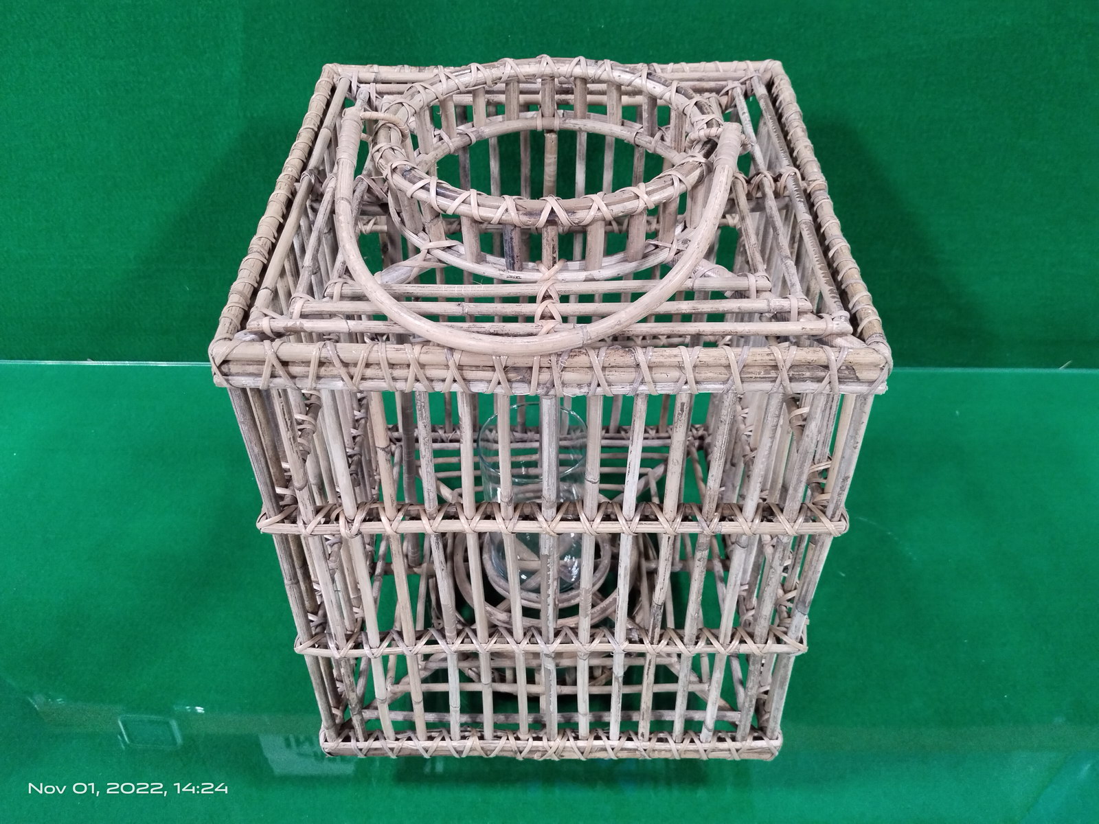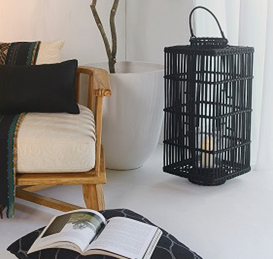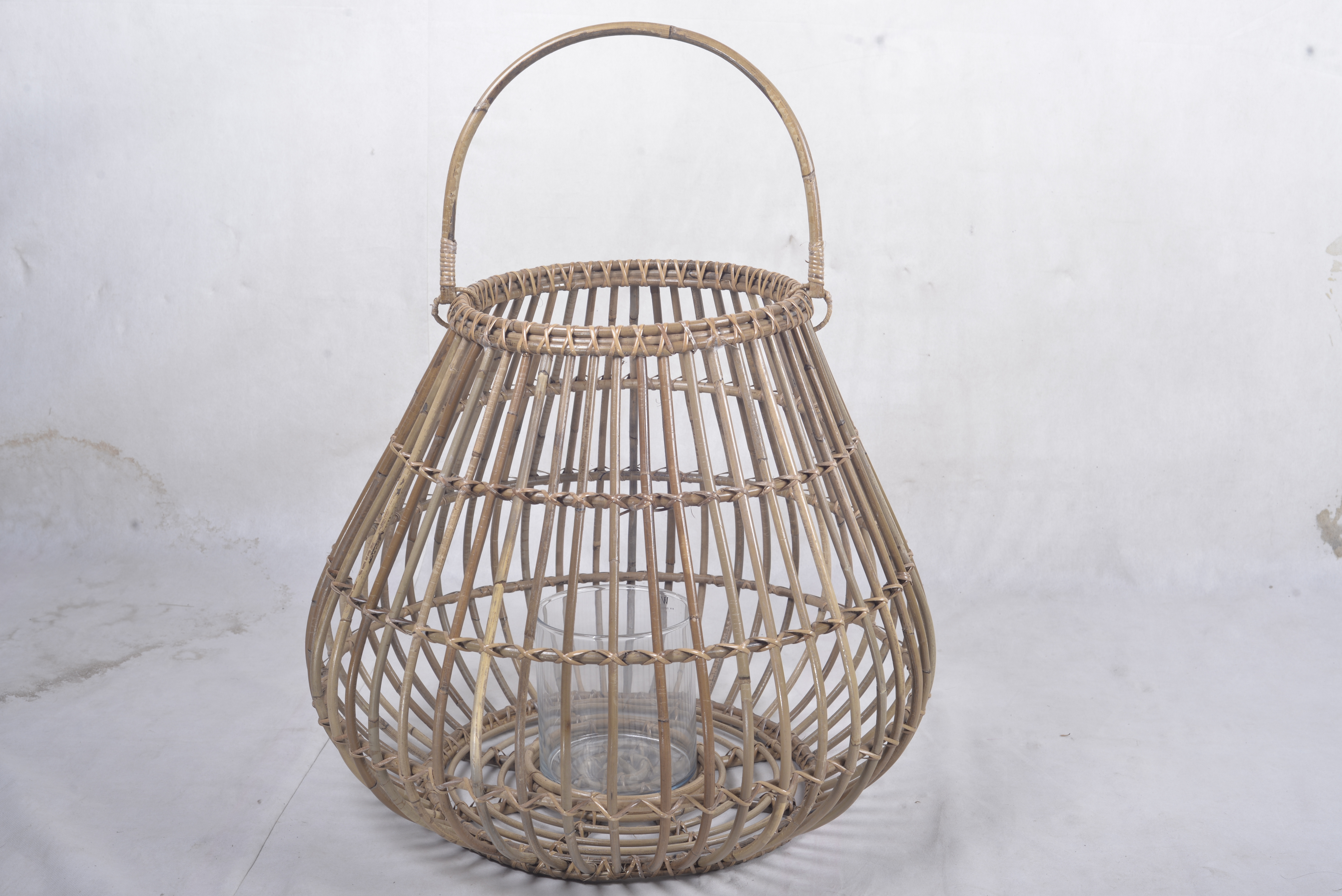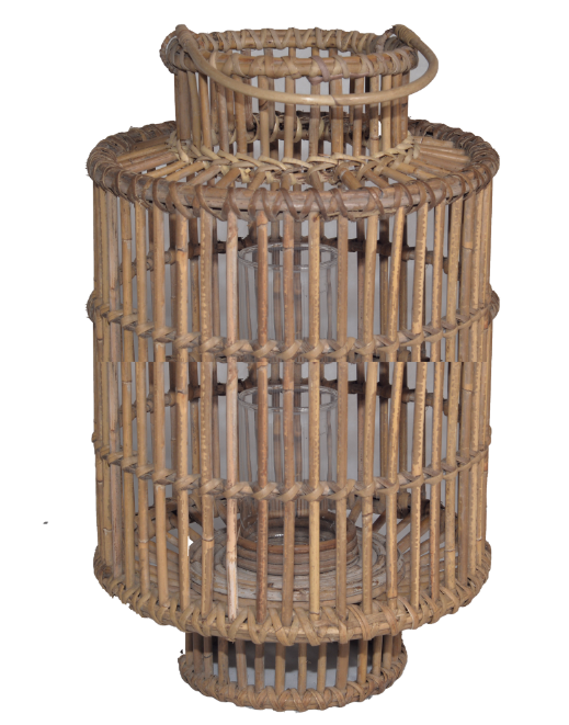 A0177.4.1 BOMBONI RATTAN LANTERN LARGE WITH GLASS INSIDE