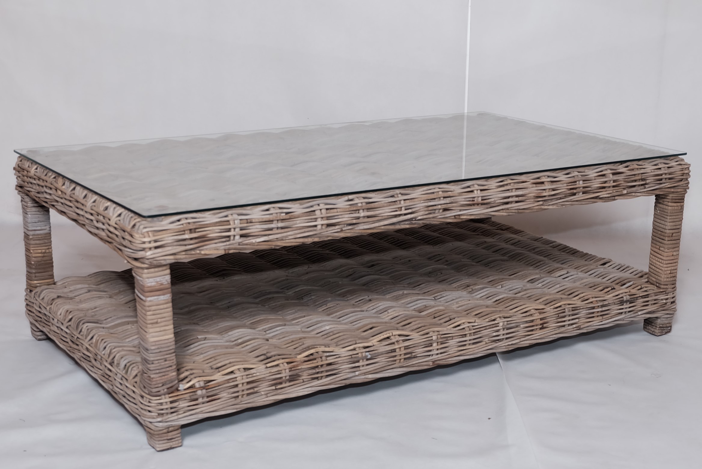 F0508.42.1 VERONA COFFEE TABLE WITH GLASS TOP - RATTAN CL