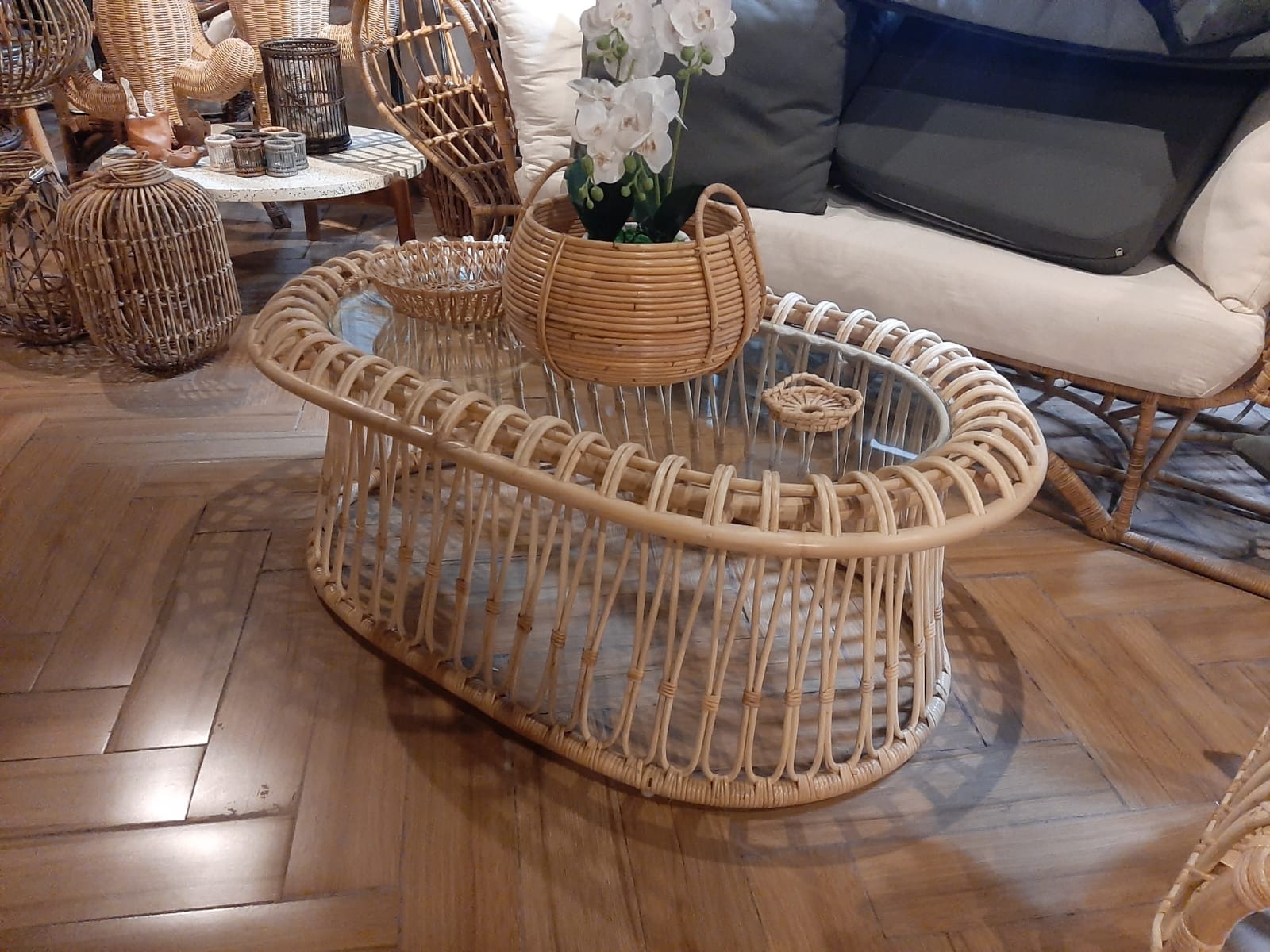 F0369.6.1.0 SYLVIE RATTAN TABLE WITHGLASS TOP 5 MM